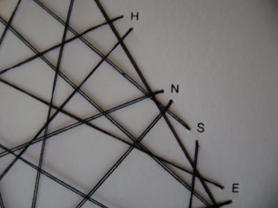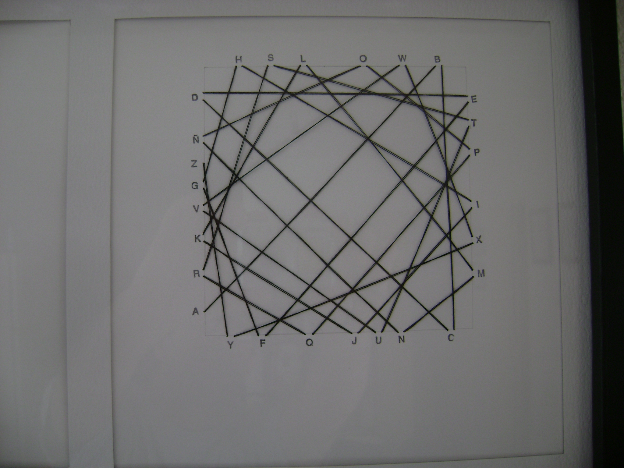 «Fue un proceso de mucho trabajo y mucho tiempo. Son Obras de pequeño formato en hojas tamaño A4. De esta serie me gusta la combinación de materiales; está realizada con lápiz, tinta e hilo de algodón y es un acercamiento a la Poesía Visual y al Arte Textil».