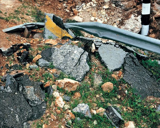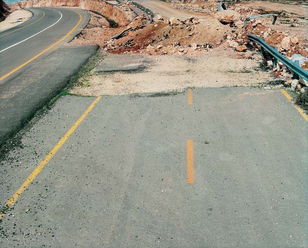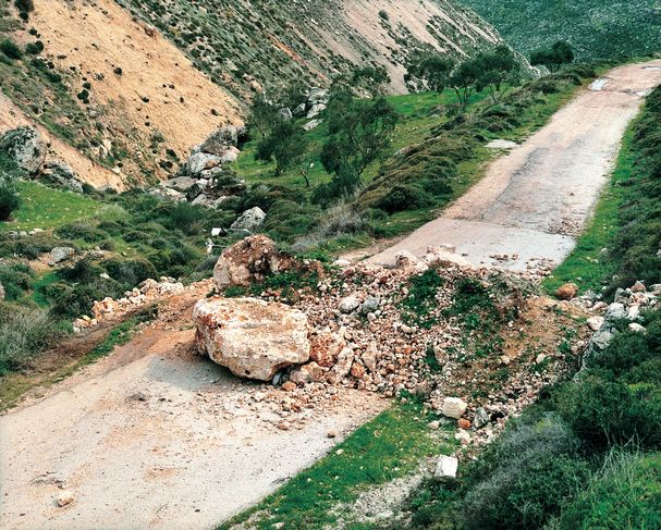 «Sophie Ristelheuber, en efecto, ha rehusado fotografiar el gran muro de separación que es la encarnación de la política de un Estado y el ícono mediático del «problema del Medio Oriente». En cambio ha dirigido su objetivo hacia las pequeñas barreras que las autoridades israelíes han edificado sobre las rutas de campo con los elementos que había en sus bordes. Y lo ha hecho la mayoría de las veces en picado, desde el punto de vista que transforma los bloques de las barreras en elementos del paisaje. Ha fotografiado no el emblema de la guerra sino las heridas y las cicatrices que ella imprime sobre el territorio».