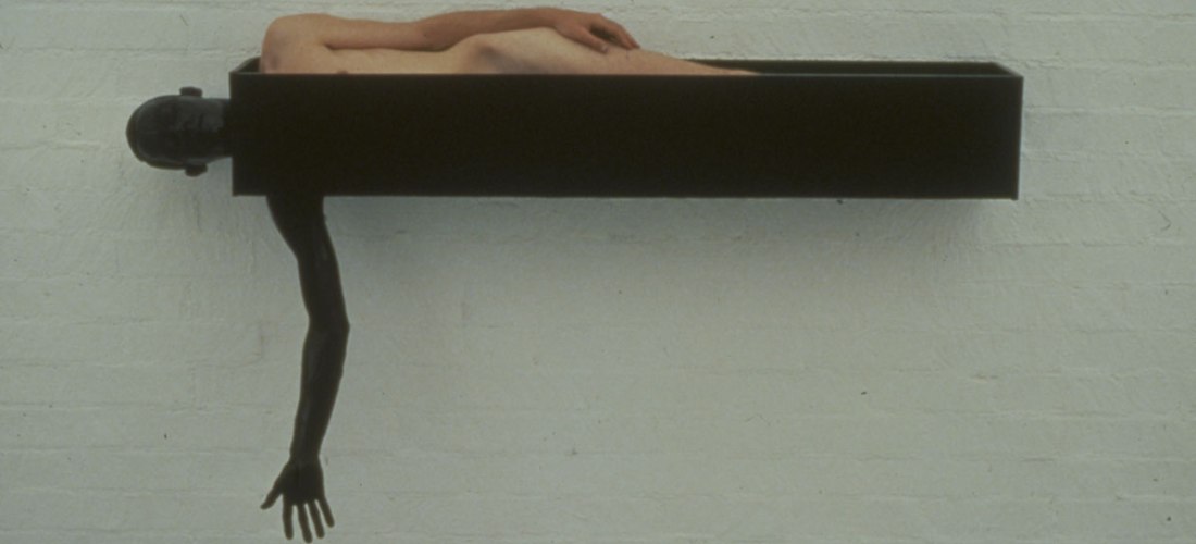 En una serie de esculturas-instalaciones de 1981-1985, el artista estadounidense, Charles Ray, nos muestra una extraña relación entre el cuerpo desnudo y los objetos técnicos. Si en varios de sus trabajos está presente el féretro, que indica una relación entre la vida y la muerte mediada por la técnica, en otras ésta se alza como elemento interventor de la vida desnuda. Un brazo insertado dentro de un tubo que sujeta todo el cuerpo nos hace recordar que el sujeto está siempre sujetado y que en su devenir humano, es decir, en su antropogénesis, esta sujeción es una condición de posibilidad. No se es humano en tanto no se está mediado por los objetos humanos. Ellos nos atraviesan y nosotros los atravesamos. Pero también nos ciegan cubriendo por completo nuestra cabeza.