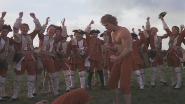 Los países se disputaban las fronteras, como Silesia, y la sucesión al trono de Prusia. De ahí viene la distinción entre el hombre inglés y el europeo (mucho antes del brexit, por cierto). La película muestra bien la diferencia entre los ejércitos de la época. El ejército inglés se muestra como una pelea callejera de boxeo entre soldados, falta de suministros y comida, es decir, como esa idea de que pasar por penurias era parte de ser un soldado, pero seguías siendo libre. Por otro lado, el ejército prusiano era el que sólo tenía líderes nacidos en Prusia y la base estaba formada por antiguos convictos que ganaban el trueque, como el propio Barry Lyndon (que ya se consideraba un desertor del ejército británico).