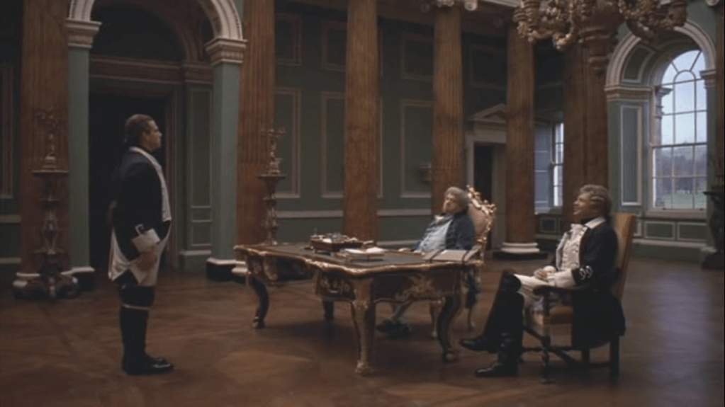 El juego con la narrativa histórica y con la forma en que se suelen construir las biografías también es claro en la intención de la película, que no olvida mostrar una diferencia irónica entre lo que se retrata en palabras y la realidad del sujeto. Lo que recuerda un poco a la fina ironía cómica instigada por la narración de grandes hazañas, como el tipo de biografía que encargaban los emperadores y los reyes y que solía ser como un encargo patrocinado que hacía publicidad para esas familias. El tono de la película se une a esta perspectiva de «adulación», también tan común en la vida de la sociedad de la corte.