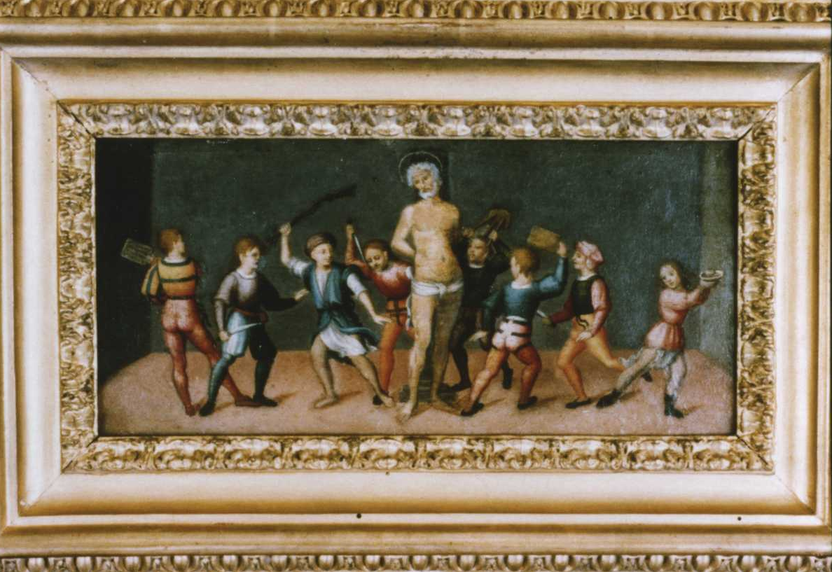 Hay una pintura de principios del siglo XVI en las galerías de la Universidad de Bolonia que muestra la espantosa muerte de San Casiano de Imola a manos de sus propios alumnos. La leyenda es conocida aunque vale la pena repasarla: se cuenta que Casiano era un cristiano que huía del Imperio Romano, y encontró un puesto de maestro en la ciudad de Imola hasta que fue descubierto y expuesto. En las hagiografías de los santos se destaca su pasión por la lectura y escritura que inculcó a sus alumnos. Esto confirmaría el alto precio del castigo aplicado a Casiano: tortura y muerte a manos de una turba de jóvenes estudiantes (algunos supuestamente incluso trajeron sus punzones afilados). La pintura de Bolonia es, de hecho, una miniatura de aproximadamente cinco por siete pulgadas, en la que podemos ver a ocho jóvenes estudiantes golpeando a Casiano desnudo y atado a un tronco. El pintor anónimo ha elegido cuidadosamente que todas las figuras den la espalda al espectador, a excepción de un estudiante en el extremo derecho de la pintura que parece sostener una especie de cuenco en el aire. Éste parece estar desconectado de la multitud frenética. Y, sin embargo, no hay heridas ni contusiones en el cuerpo de Casiano, lo que podría ser una declaración alegórica del pintor sobre la condición del mártir, o, más literalmente, denotar el simple hecho de que el cruel festín acaba de comenzar. El rostro parece poseído por una monótona incredulidad que aún no llega a expresar el éxtasis del sufrimiento corpóreo. Definitivamente su postura es la de un humillado en medio de un acto tan violento y atroz. Esto se destaca por la escenografía del asalto, que no parece tener lugar al aire libre, sino en una habitación extraña cuya única salida se devela desde una oscura y siniestra franja negra al lado izquierdo de la pintura.