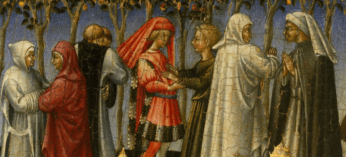 El «Paraíso» (1445) de Giovanni di Paolo es un pequeño y poco conocido cuadro sobre madera que en algún momento formó parte de un retablo de la catedral de Santa Dominica de Siena. A pesar de sus proporciones diminutas, esta impactante imagen del paraíso nos sitúa ante una coreografía de encuentros con los muertos, como si el cielo no fuera una mera etapa superior en la secuencia de la salvación, sino un territorio que continúa cultivando, de forma ininterrumpida, el habla de “esta vida”. Mediante una composición sencilla y rítmica, rodeado de cítricos y vegetación y animales, Di Paolo ofrece al espectador un estado paradisíaco que no se centra en la gracia absoluta ni en un mundo bañado de una irresistible encantación; sino en algo que, en su pobreza aparente, revela la proximidad, cara a cara, con un otro, quizás un amigo, un amante, o un ángel. En ese encuentro el habla es silenciosamente redimida. Si recorremos con la vista todas las figuras del cuadro es como si se confirmara aquella bella intuición de Robert Antelme en cuanto a que “la única trascendencia es la relación entre los seres”, alma a alma. Y no otra cosa es la textura pictórica de este paraíso que trasciende la vida porque retorna al encuentro. Aquí podemos definir el paraíso terrenal como ese espacio donde se dispensa la trascendencia porque, ante todo, acoge el cometido de aquello que nos ha tocado.
